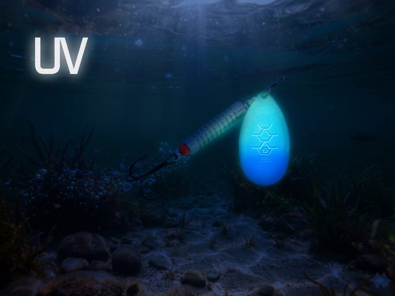šviesą, todėl masalas tiesiogine prasme šviečia plėšrūnams. Metalinė apdaila efektyviai